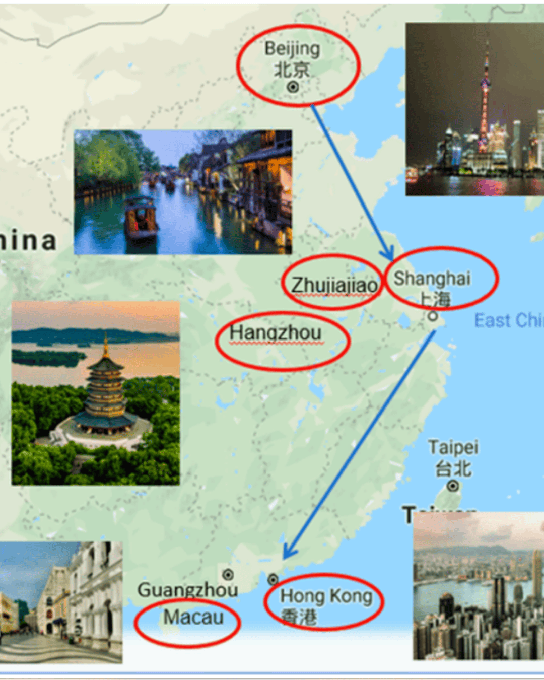 Pela manhã, partida à vila Zhujiajiao (1h20m), uma das quatro principais vilas antigas em Shanghai, conhecida como a Pérola de Jiangnan e a Veneza do Oriente. A área total é de 136.85 quilômetros quadrados, com recursos ricos de paisagens naturais e patrimônios culturais. Há 36 pontes de pedra e um grande número de edifícios antigos das dinastias Ming e Qing nesta vila antiga. Moram ainda 59,000 habidantes na cidade, principalmente vivendo de agricultura familiar. Inclui café da manhã