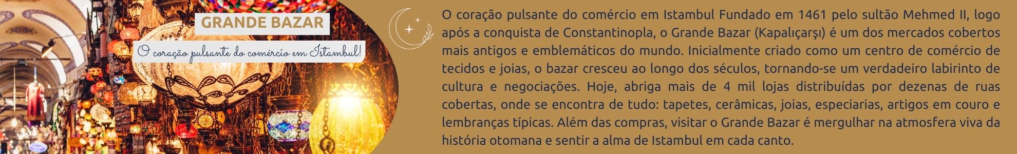 Imagine caminhar entre os minaretes de Istambul, cruzando o lendário Bósforo que separa dois continentes. Sentir a energia do Grand Bazaar, explorar palácios sultânicos e saborear especiarias orientais. Agora, imagine tudo isso acompanhado por um guia experiente, em um grupo animado, com conforto e segurança garantidos desde o Brasil.
